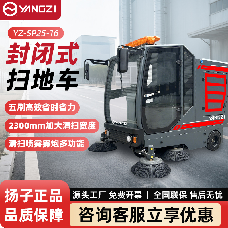自營(yíng)揚(yáng)子掃地機(jī)YZ-SP25-16 全封閉式駕駛 工廠車間園區(qū)道路樹葉掃路車
